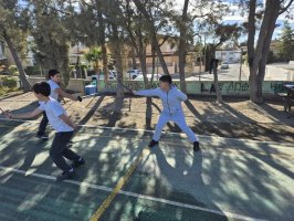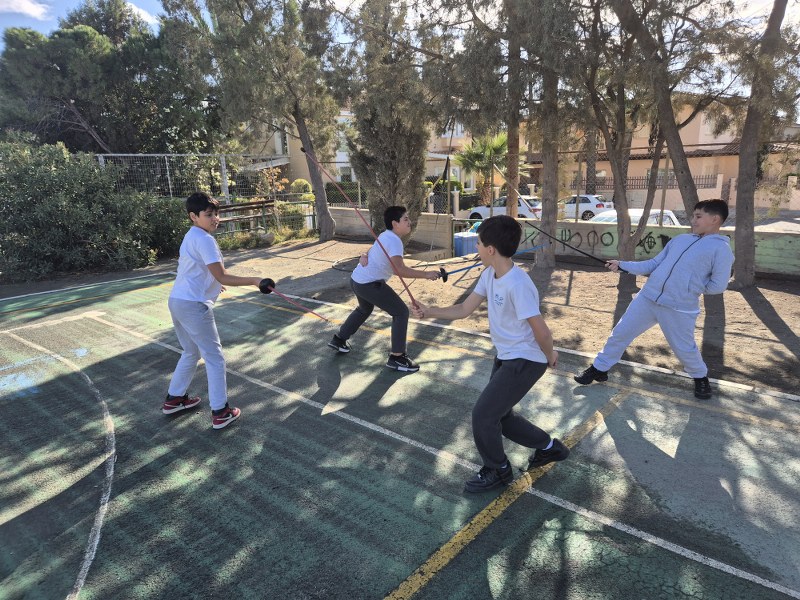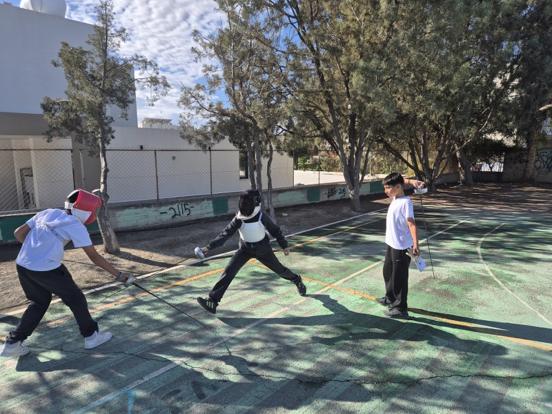 Τα παιδιά της Στ' τάξης είχαν την ευκαιρία να μάθουν βασικά στοιχεία ξιφασκίας από συμμαθητή τους που ασχολείται με το άθλημα. Τελικά, οι σωματοφύλακες ήταν πολύ περισσότεροι από τρεις!