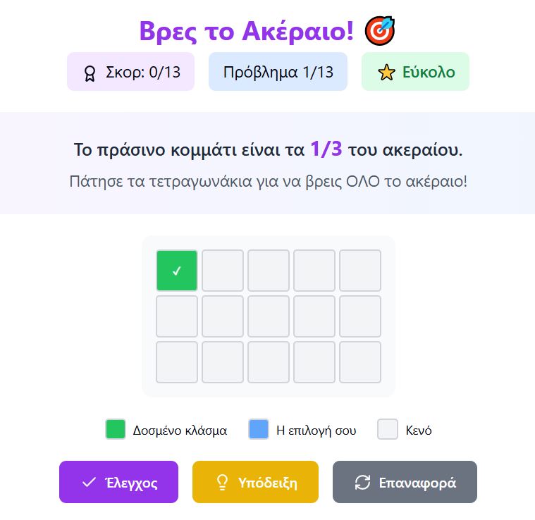 Εφαρμογίδιο που βοηθά τα παιδιά να κατανοήσουν πώς να βρίσκουν το ακέραιο όταν τους δίνεται ένα κλάσμα!