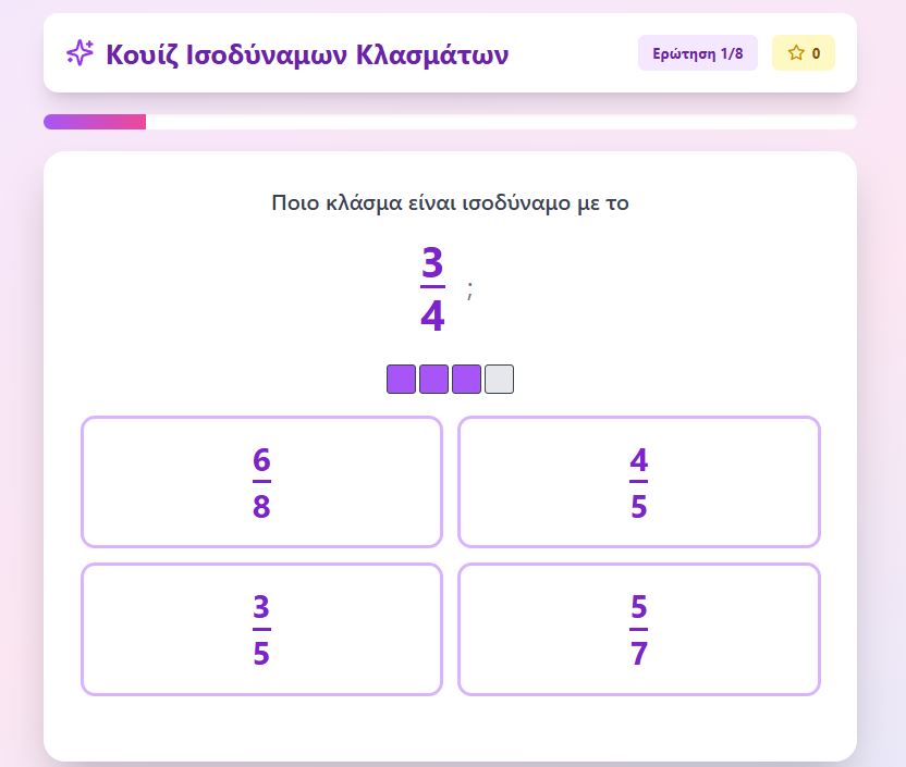 Άμεση Ανατροφοδότηση: Το app δείχνει αν τα κλάσματα είναι ισοδύναμα με χρώματα και μηνύματα